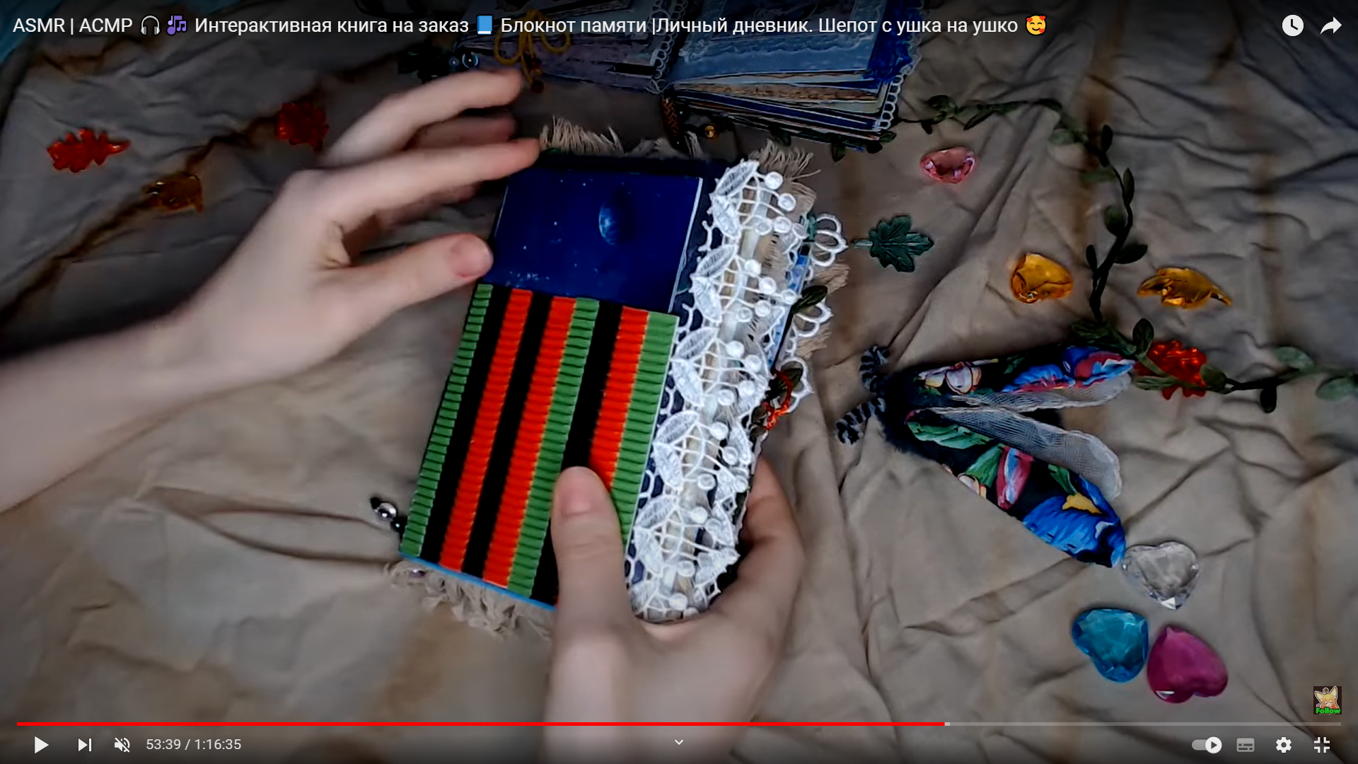Я сделала книгу-дневник, с множеством блокнотиков, страничек для записей, а так же просто с красивыми объектами и картинками. Поскольку все мои книги связаны с АСМР то присутствовали конечно же элементы шуршания и расслабления 😏 Мне понравилось создавать эту книжечку, потому что я обожаю ботаническую тему. тема творчества для меня тоже очень близка, хотя вышивкой я и не занимаюсь. Но могу точно сказать что во время творческого процесса мне было приятно погружаться в эти миры